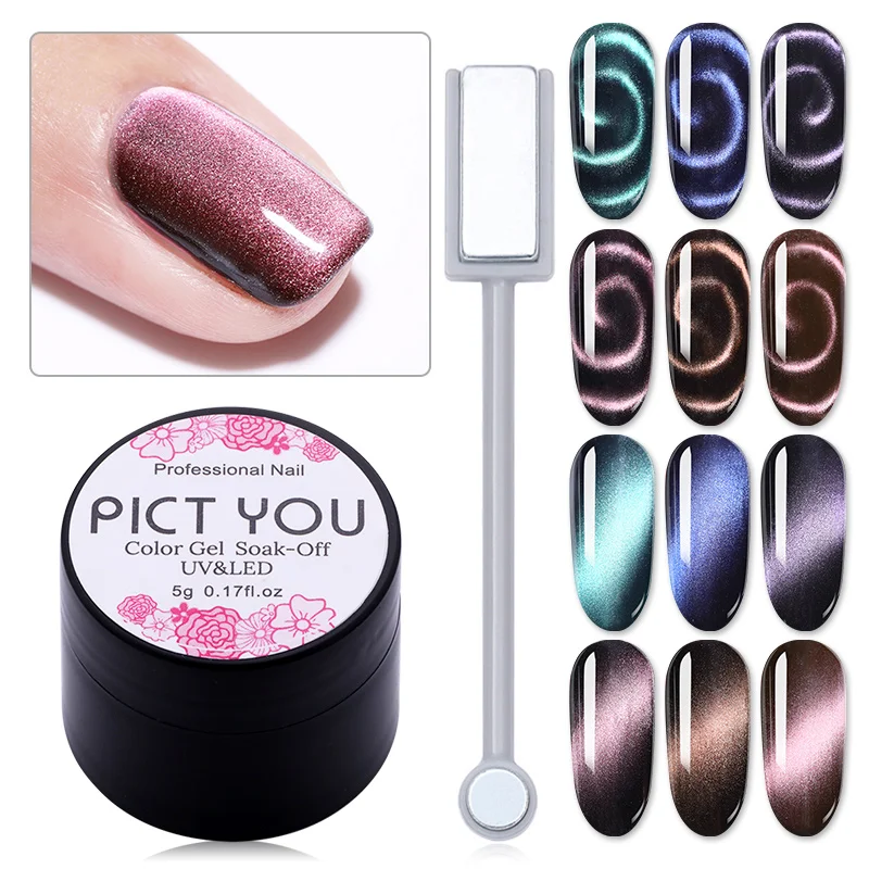 PICT YOU 5g 5D Гель-лак для кошачьих глаз Фиолетовый Зеленый Синий Гель-лак для использования с магнитом замочить от ногтей УФ-гель лак 5 цветов