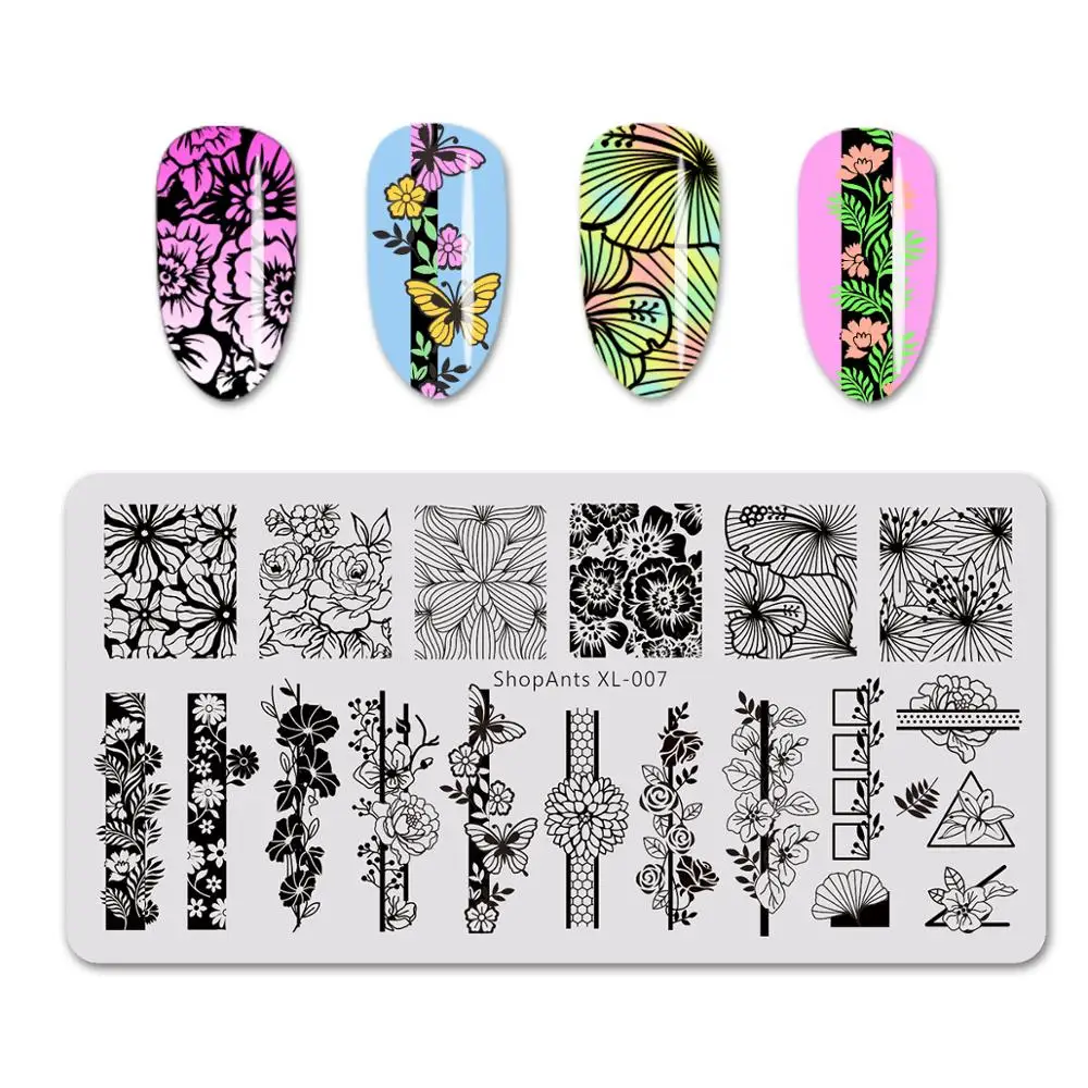 Штампованные пластины для покупок, цветок травы, пион, Бабочка, полосатые линии, изображение ногтей, шаблон формы, трафарет, инструмент для д...