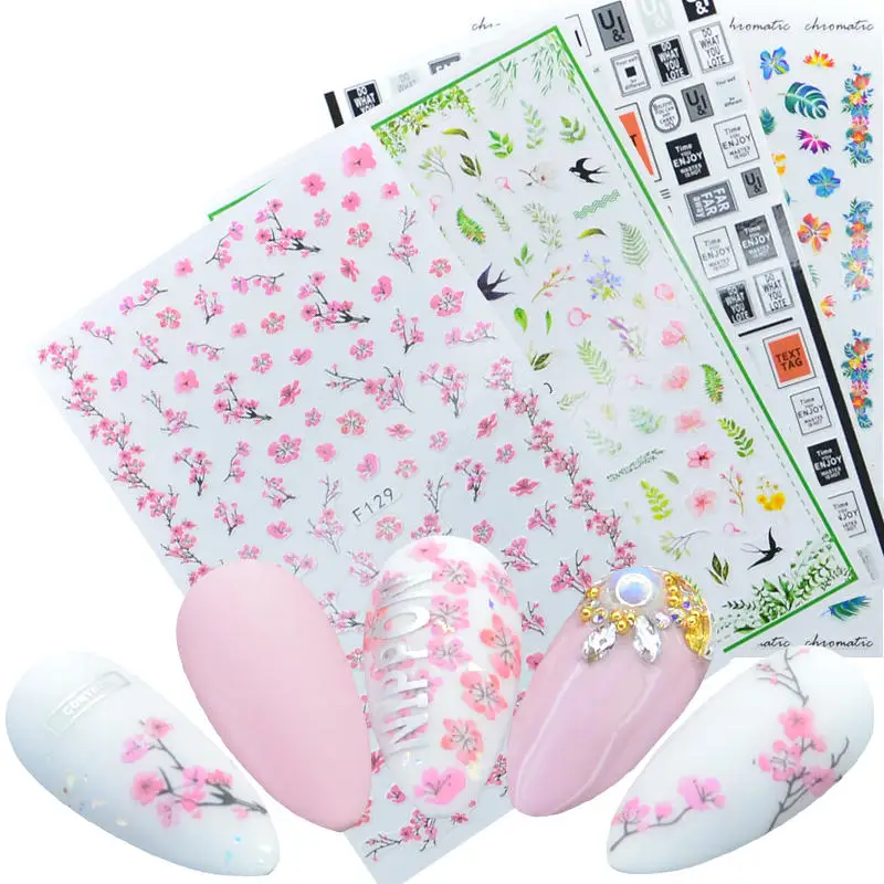 1 шт. микс зеленые листья наклейки для ногтей цветок животное Бабочка 3D клей слайдеры обертывания советы Шарм Искусство Маникюр украшения