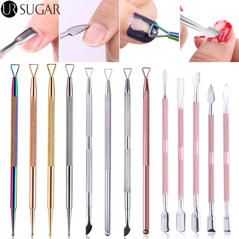 Розовое золото, толкатель для удаления кутикулы ногтей, стержень для удаления УФ-геля, двойная ручка из нержавеющей стали, инструменты для педикюра, маникюра, дизайна ногтей