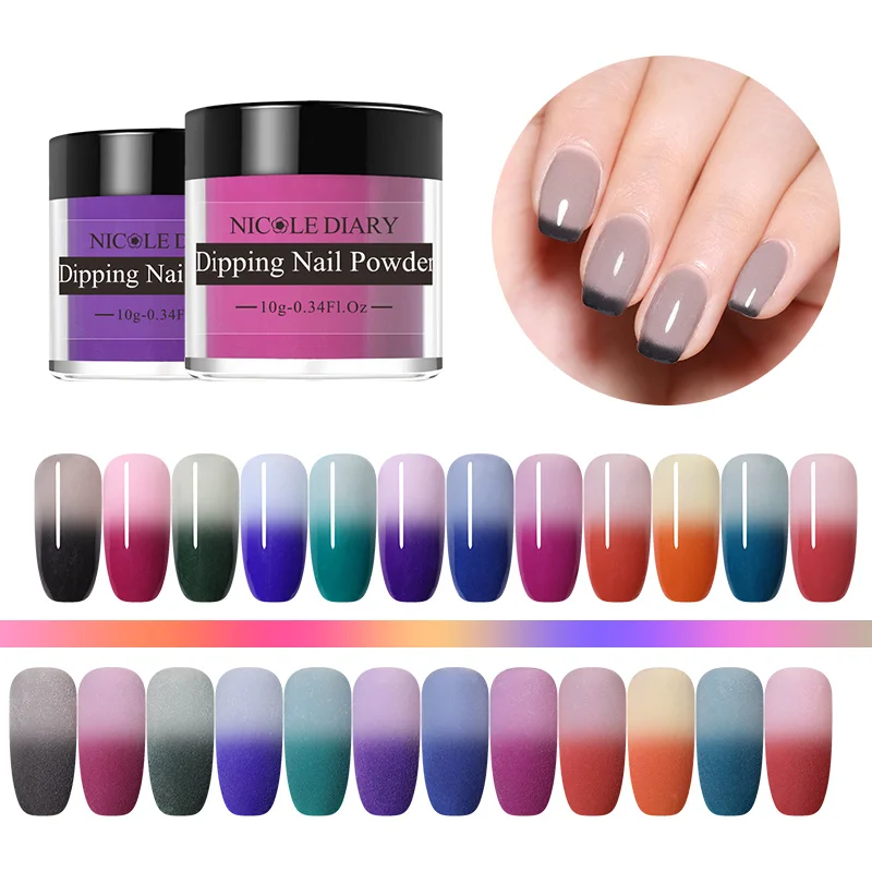 NICOLE DIARY Thermal Dipping Nail Powder Gradient Color Change Light Change Dipping Nail Glitter Dust Natural Dry Decoration 10g