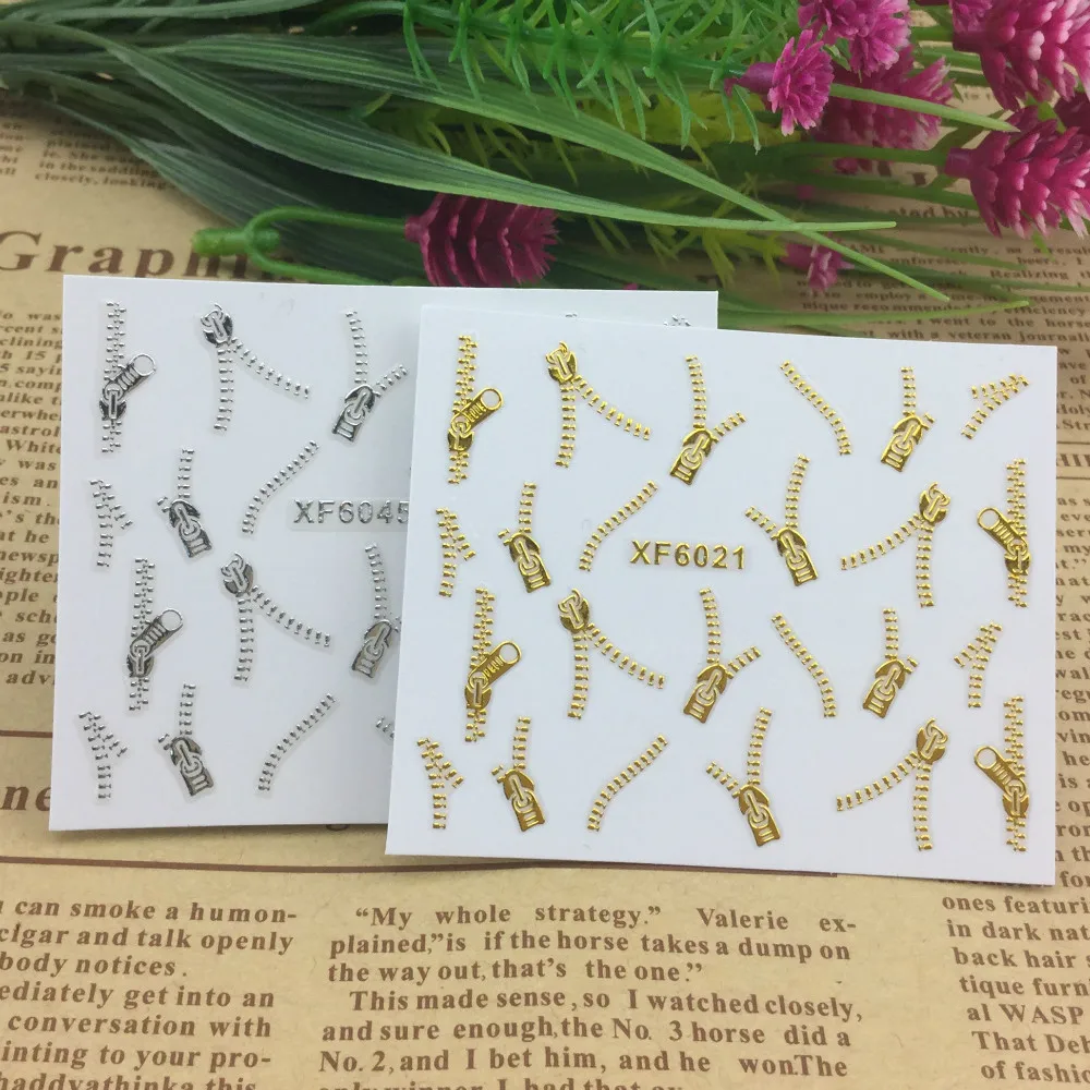ZKO 2 листов, модные 3D сделай сам золотые и серебряные молнии, дизайн ногтей, наклейки и наклейки для ногтей, инструменты для ногтей