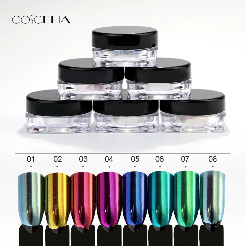 COSCELIA 1 коробка блёстки для ногтей косметическая пудра жемчуг в виде ракушки мерцающая пудра пигмент градиент проблеск пыли дизайн ногтей ук...
