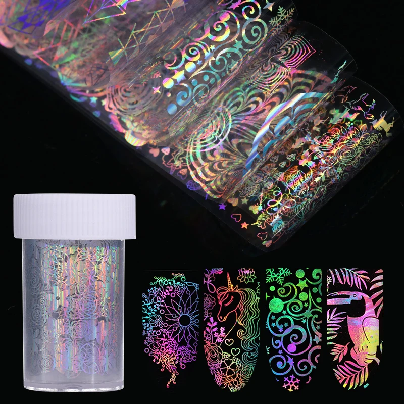 Розовое золото Лазерная фиолетовая Фольга для ногтей Серебряный голографический маникюр Дизайн ногтей переводная наклейка s наклейка DIY ин...