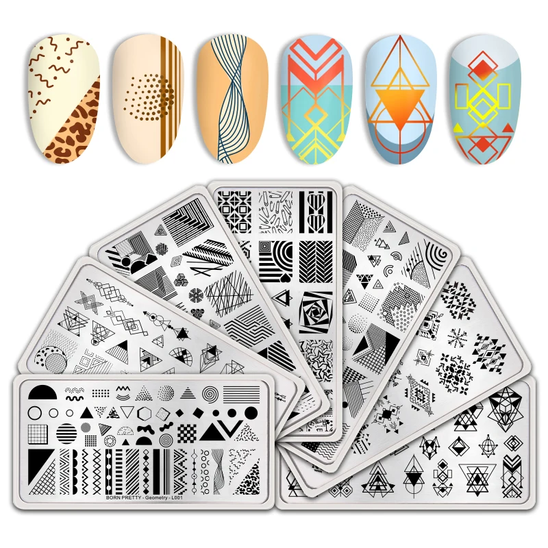 Штамповочные пластины с геометрическим узором, 304 нержавеющая сталь, штамп для ногтей, шаблоны для дизайна ногтей, инструменты для печати, д...
