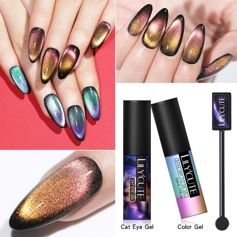 LILYCUTE 7D Магнитный Гелевый лак для ногтей Хамелеон Auroras кошачий глаз дизайн ногтей УФ стойкий гель для ногтей Сияющий замочить УФ светодиодны...