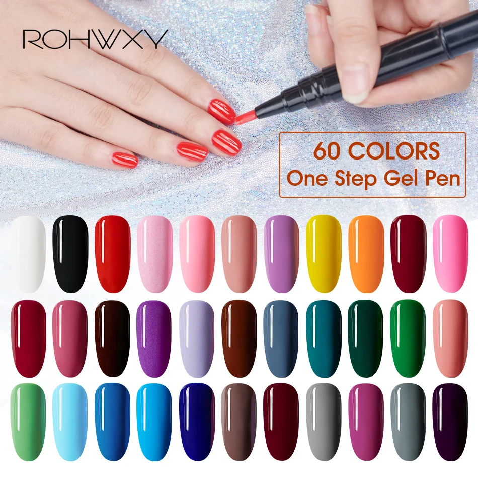 ROHWXY 3 в 1 ручка для лака Маникюр УФ светодиодный один лак для ногтей замочить от гелевой краски Гибридный 60 цветов гель лак для ногтей Инструм...