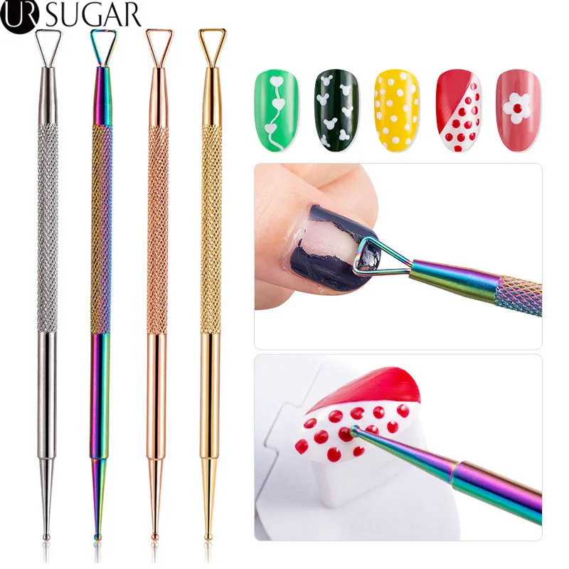 1 шт., розовое золото, УФ-гель для удаления, двухсторонняя точечная ручка, нержавеющая сталь, золото, серебро, педикюр, Маникюрный Инструмент ...