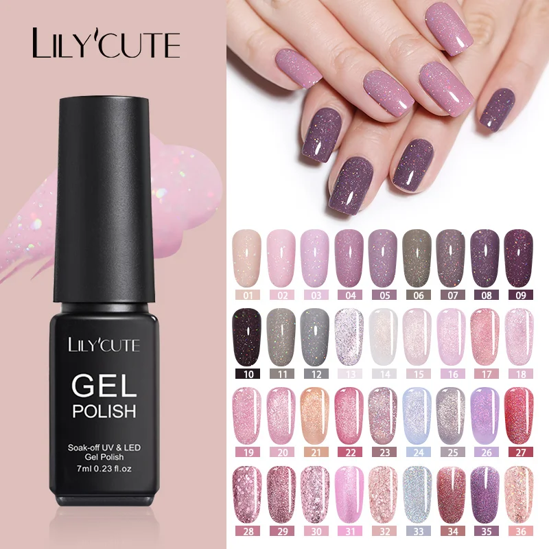 LILYCUTE 7 мл розовая серия блеск УФ-гель для ногтей сверкающий Полупостоянный лак для ногтей замачиваемый Гель-лак сухой с светодиодный лампой