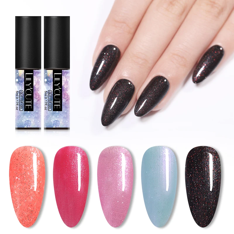 LILYCUTE 5 мл розовый черный блестящий гель для ногтей голографический лак цветной гель лак замачиваемый УФ-гель для дизайна ногтей стойкий ман...