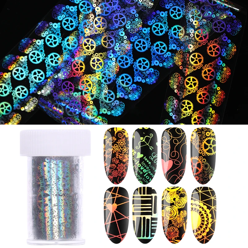 1/рулон 4*99 см Голографическая фольга на ногти красочными сверкающими смешанными узорами, дизайн ногтей переводная наклейка для ногтей DIY ...