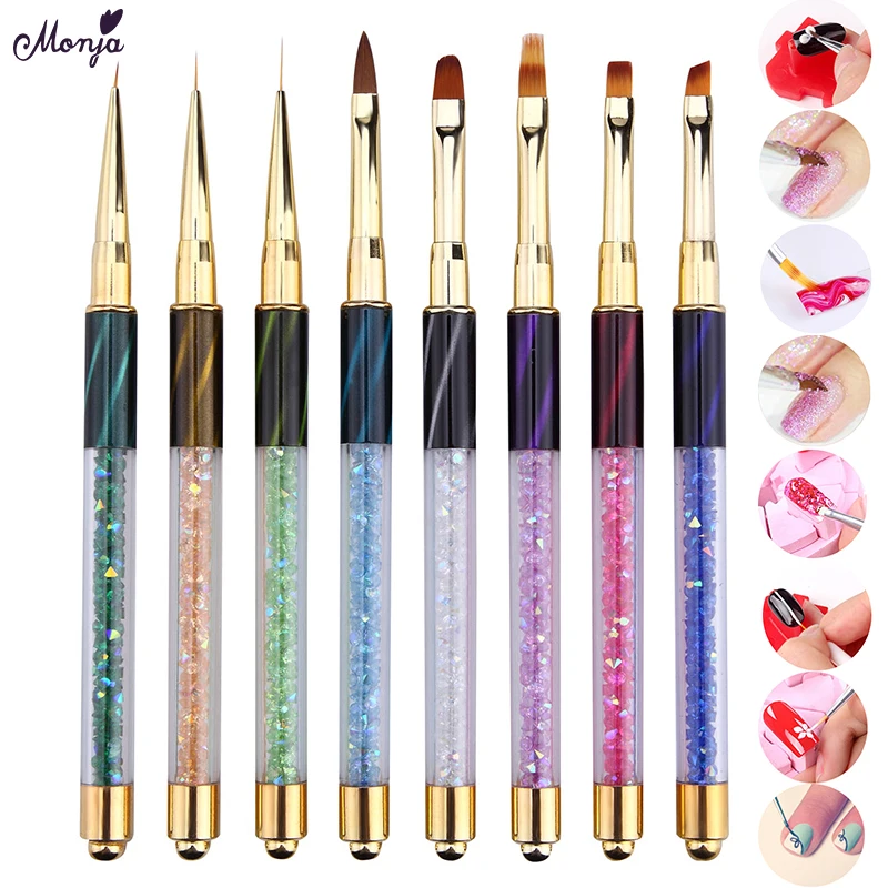 Monja дизайн ногтей полосой линии лайнер живопись кошачий глаз кисточки акрил УФ гель Расширение Builder Рисунок со стразами ручка