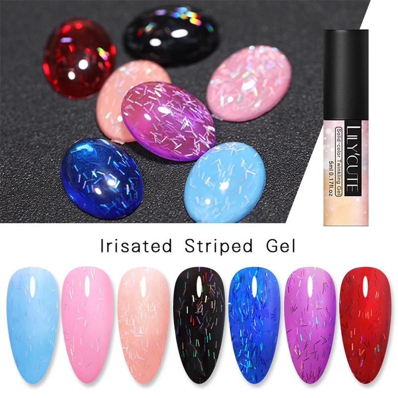 LILYCUTE голографический Блеск Блестки ирисованный полосатый гель Полупостоянный длительный замочить от УФ светодиодный Гель-лак для нейл-арта 5 мл