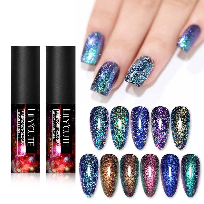 Гель-лак LILYCUTE хамелеон, голографический УФ-Гель-лак, блестящие гибридные Лаки, черная основа, необходимо отмачивать Гель-лак