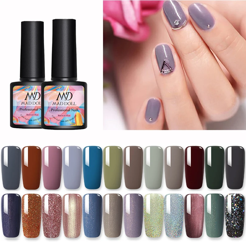 Mad Doll 8 мл Лак для ногтей УФ Гель-лак голографический Блестящий УФ-гель блестки отмачиваемый УФ-гель лак Цветной Гель-лак для ногтей сделай сам