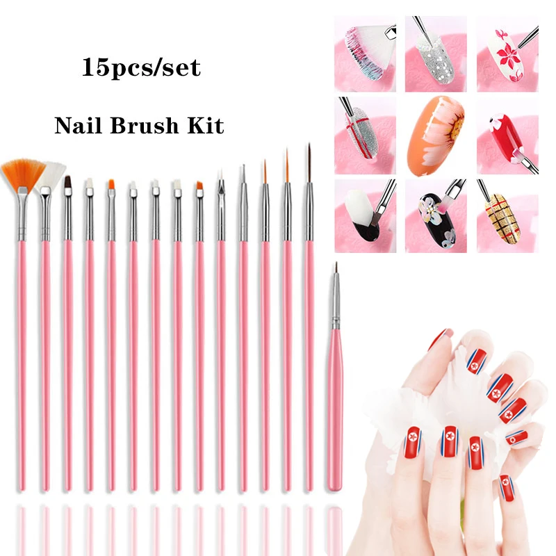 Lghzlink 15 шт. маникюрные Щетки Набор для нейл-арта кисти для рисования раскрашивания дизайн щетка для маникюра Набор гель-лаков инструменты