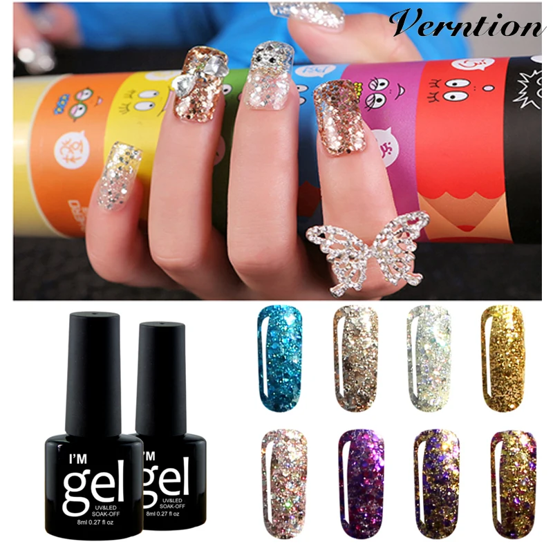 Verntion 8 мл Алмазный Блестящий цветной УФ-Гель-лак Блестящий лак цветной sGel лак для ногтей Профессиональный 3D Блеск Starlight Nail 2019
