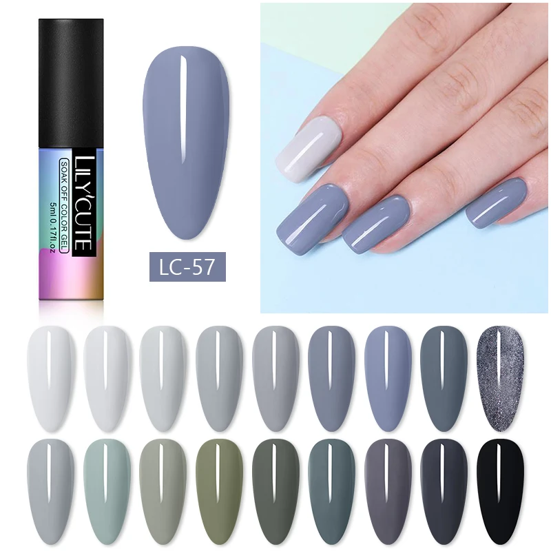 LILYCUTE 5 мл УФ-гель для ногтей серия серого цвета Полупостоянный длительный отмачиваемый УФ-Гель-лак верхнее покрытие УФ-светодиодный Гель-лак