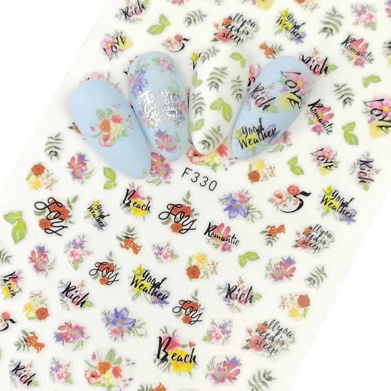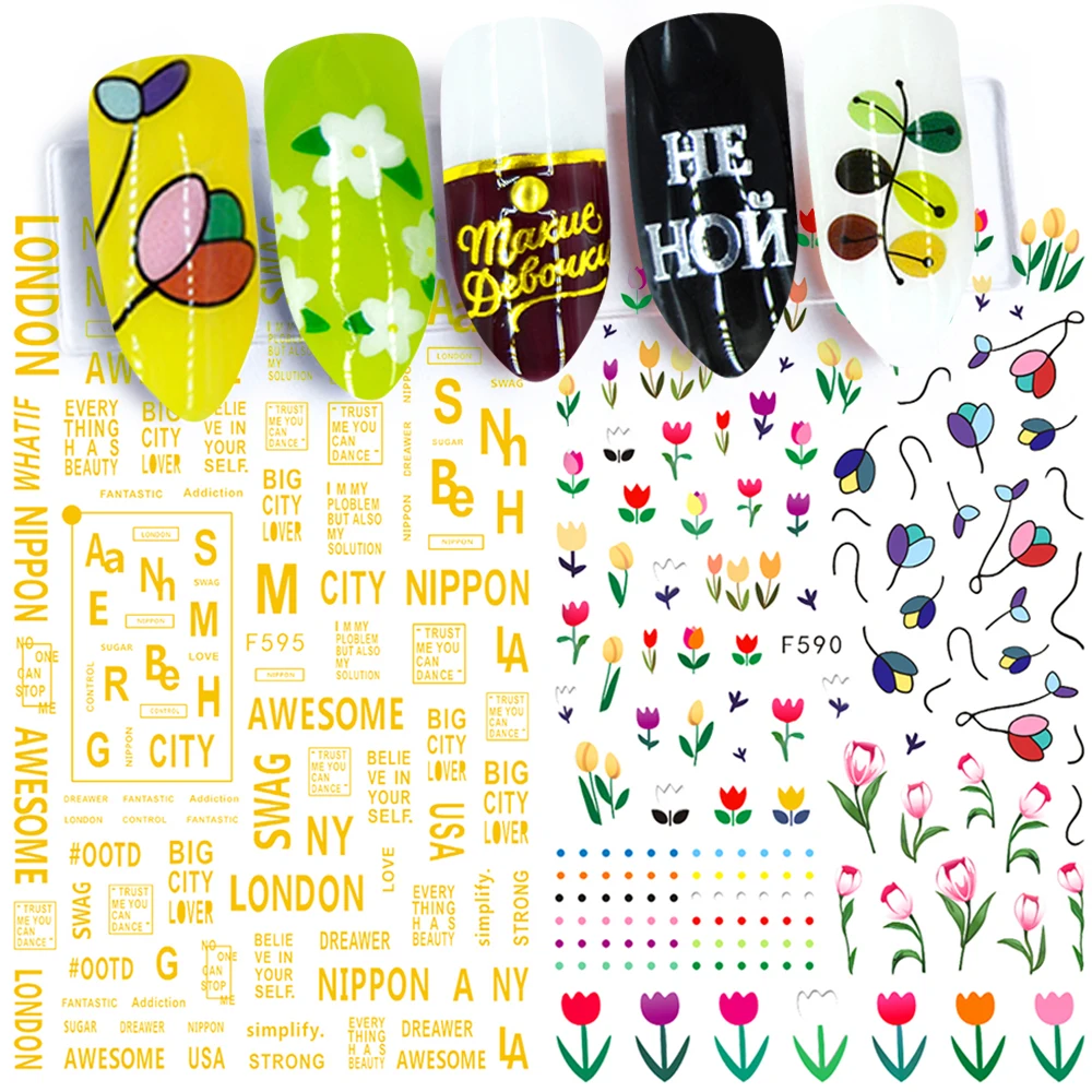 3D наклейки на ногти цветок русские буквы клейкие наконечники Золото Серебро Очаровательная наклейка Роза дизайн ногтей слайдер маникюрный SAF584-595