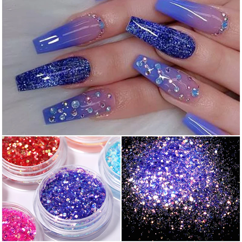 1 коробка Блестки для ногтей красочные серии Фиолетовый Синий гвозди блестки 3D украшение для ногтей в коробке хлопья декоры
