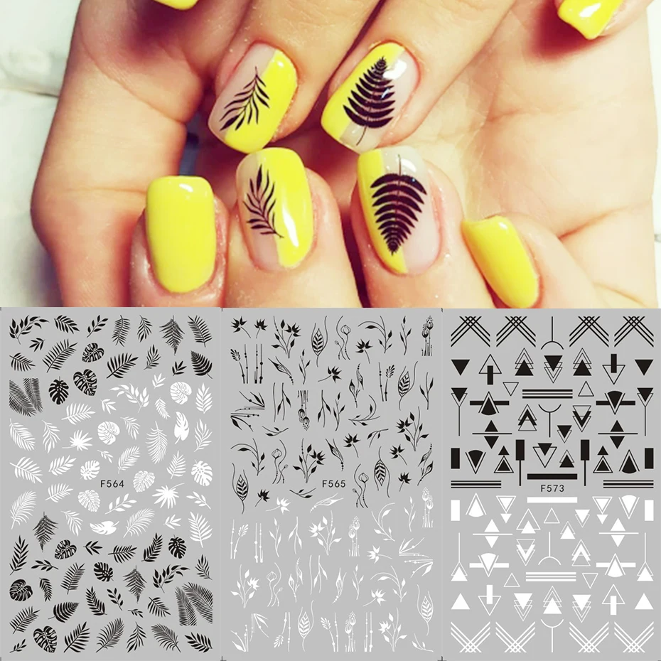 1 шт. наклейки для ногтей белый черный цветок лист линейный дизайн 3D слайдер наклейка Сделай Сам Маникюр украшение для ногтей Декор LEF564-573