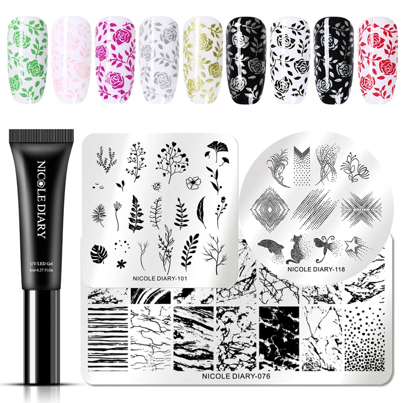 Nicole Diary 8 мл Гель-лак набор для штамповки ногтей цветной лак отмачиваемый штамп гель УФ гель для дизайн ногтей пластины