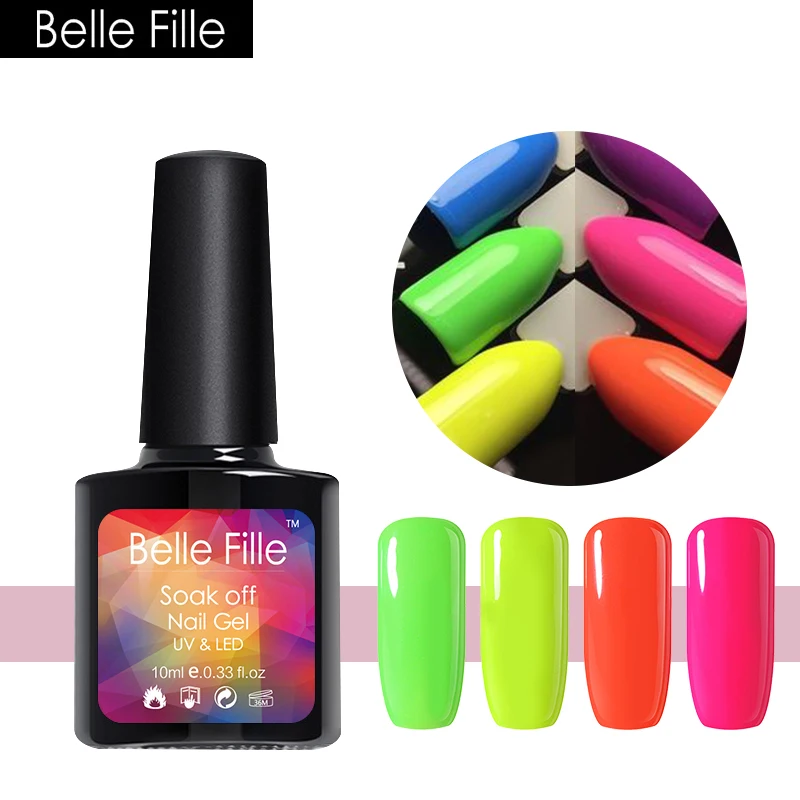 Belle Fille неоновый Цвет гель лак для ногтей UV Soak Off сверкающих Лаки флуоресценции Карамельный Цвет гель лак для ногтей дизайн Art