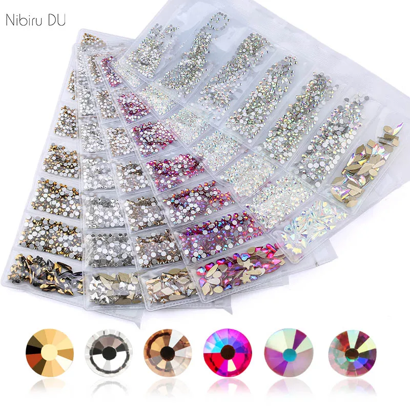 Многоразовые стеклянные стразы для ногтей, многоцветные каплевидные Стразы в форме слезы, Яркие Камни для 3D украшения ногтей
