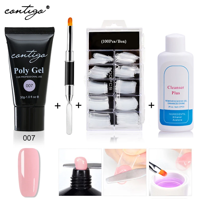 Contigo гель для наращивания ногтей Полупостоянный УФ лак полигель 10 цветов прозрачный дизайн ногтей строитель поли гель набор для ногтей Слип...