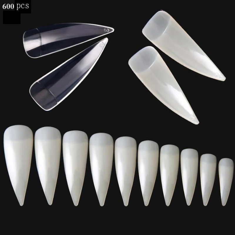 Накладные ногти на ногтях, прозрачные/естественные советы, 600 шт., накладные акриловые накладные ногти на ногтях, капсулы, накладные ногти-стилеты