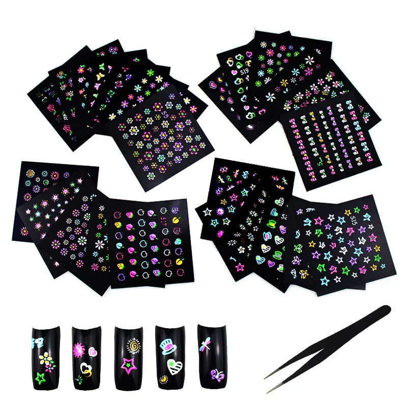24 листа 3D наклейки для ногтей цветы набор для женщин, самоклеющиеся красочные мелкий узор ногтей кончик искусство наклейки с пинцет ногти и...