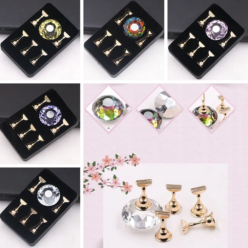 Большой магнитный держатель для ногтей + 5 тренировочный дисплей с подставкой из кристаллического сплава для дизайна ногтей