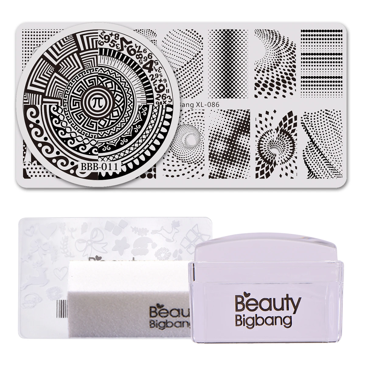 Beautybigbang набор штамповочных пластин для ногтей с цветами и точечными точками, геометрические изображения, штамп, буфер, шаблоны из нержавеющ...