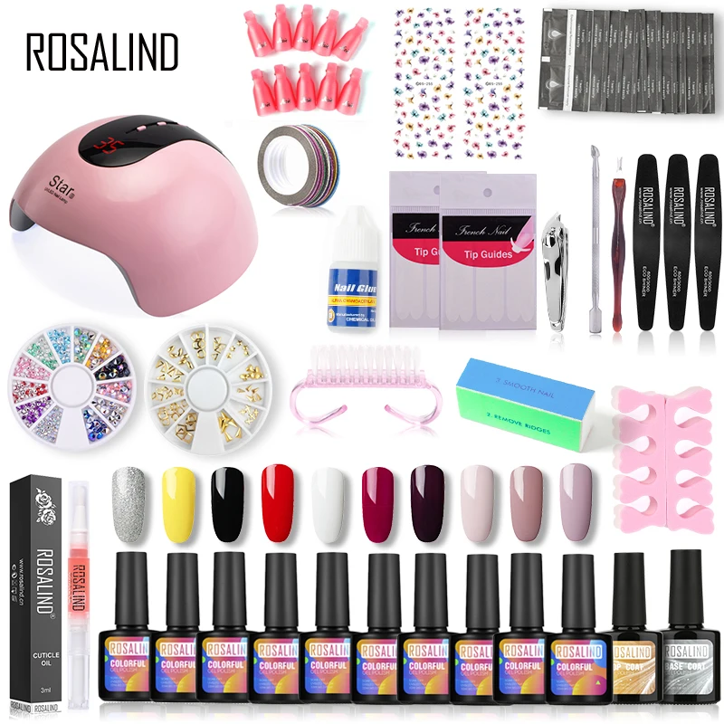 ROSALIND 10 мл маникюрный набор гель-лаков для ногтей УФ светодиодный гель-лампа Гибридный лак для полупостоянного нейл-арта набор инструментов Базовый Топ праймер