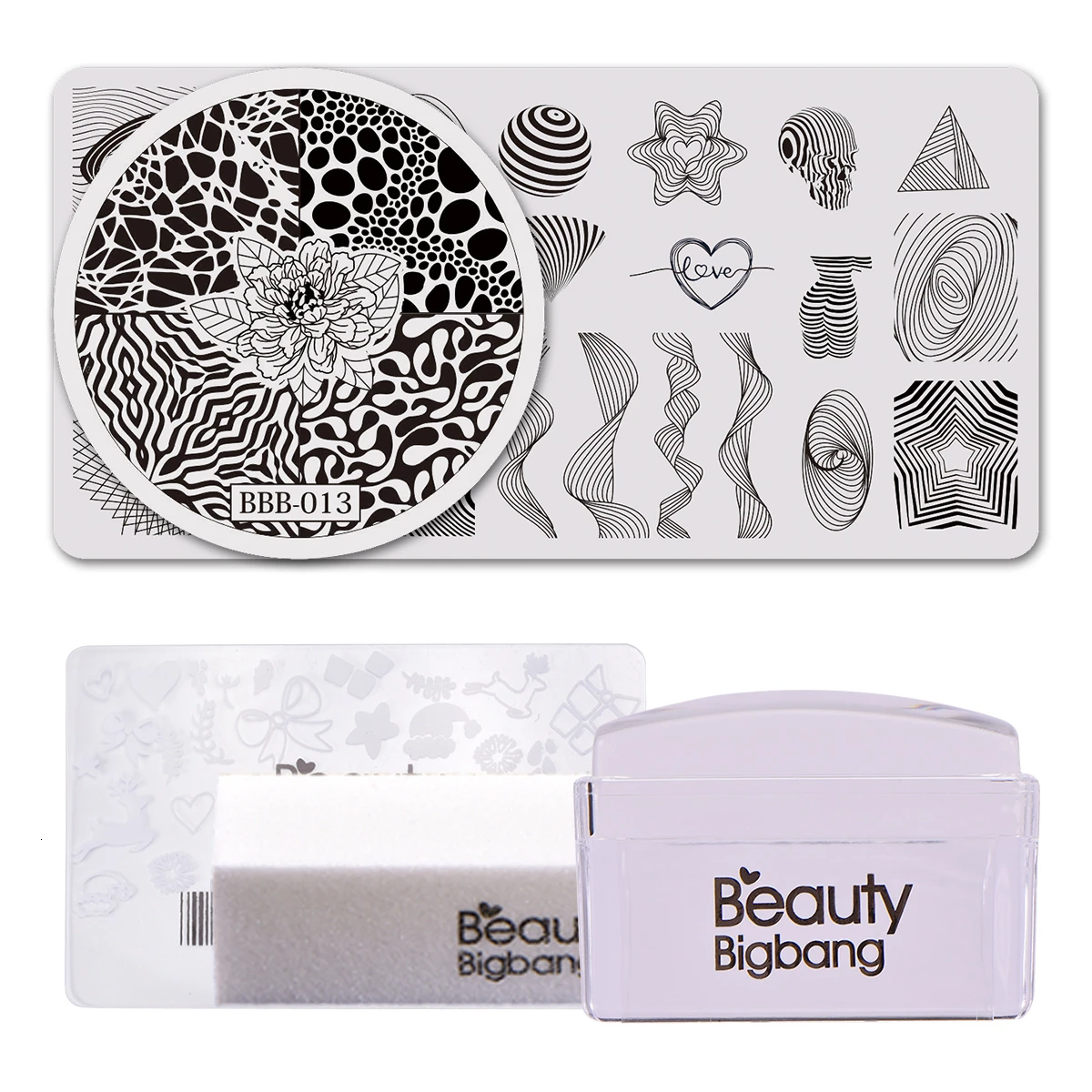Beautybigbang пластины для штамповки ногтей набор любовь звезда полосатый цветок изображение из нержавеющей стали штамп буфер Шаблоны Дизайн ног...