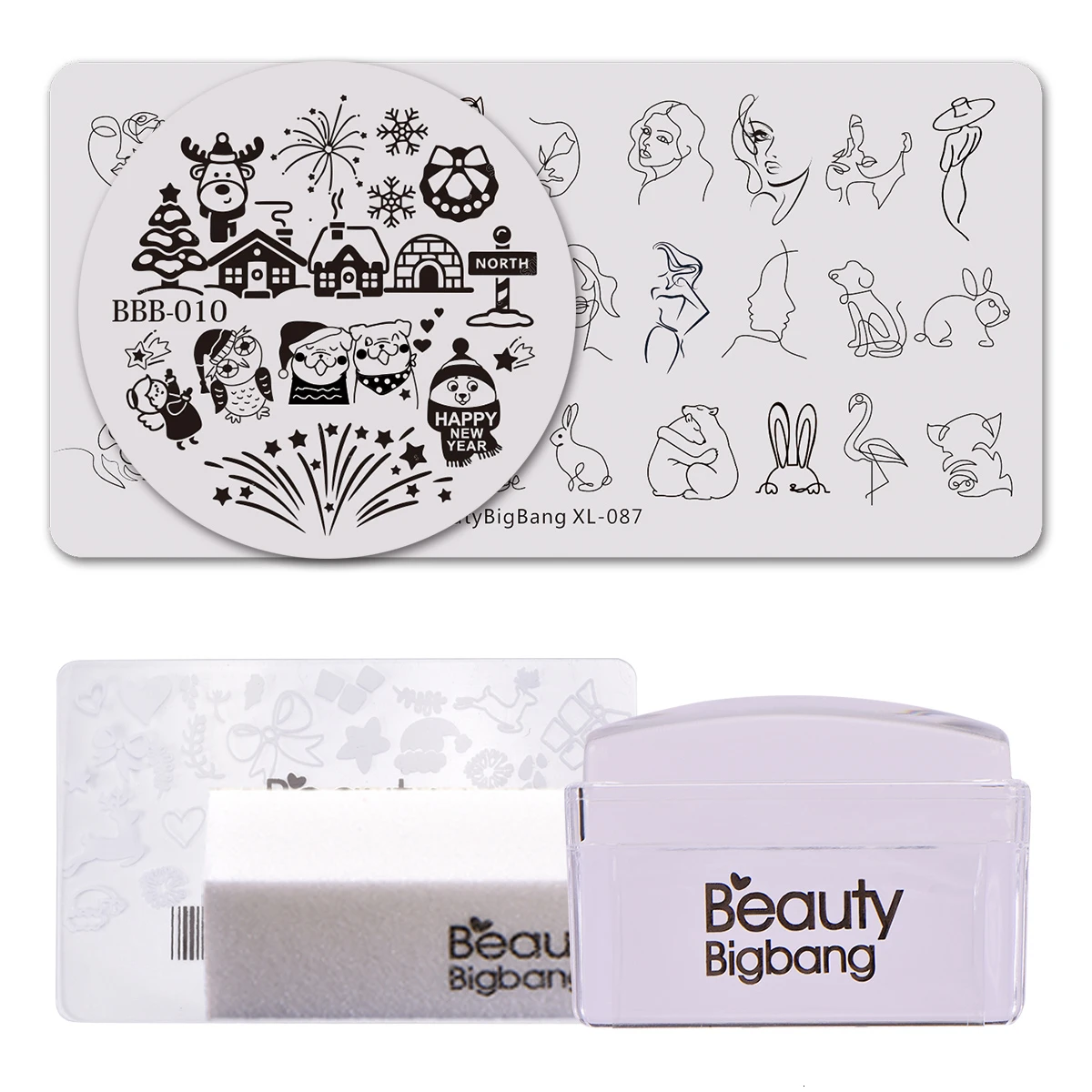 Beautybigbang набор пластин для стемпинга ногтей зимний Снеговик Полосатое лицо кролик изображение из нержавеющей стали штамп буферный инструме...