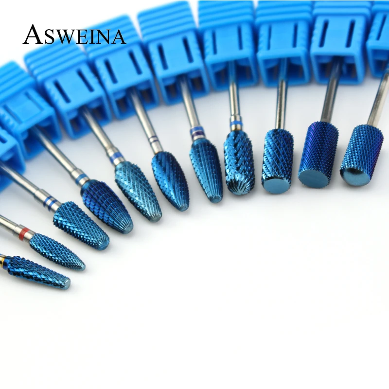 ASWEINA 11 Тип синий карбид вольфрама сверло для ногтей роторные заусенцы электрические фрезы для маникюрных сверл аксессуары