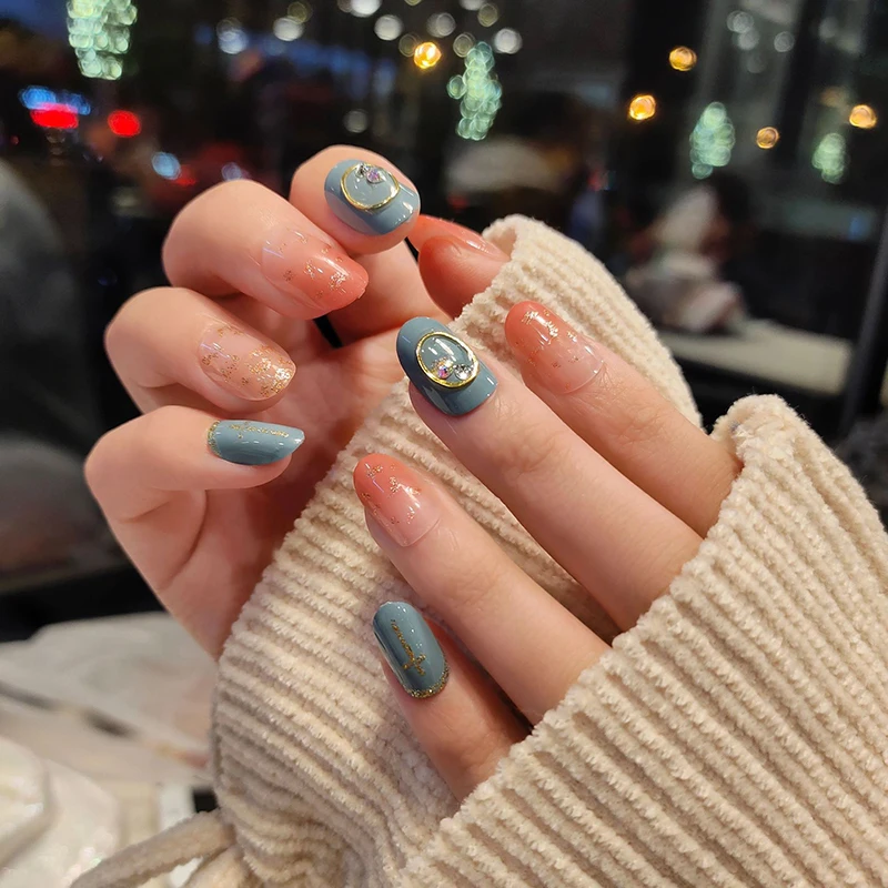 24 шт/коробка зимой нежный постепенный поддельный пресс на ногтях Золотая Фольга декоративный Маникюр накладные ногти готовая продукция пригодная для носки
