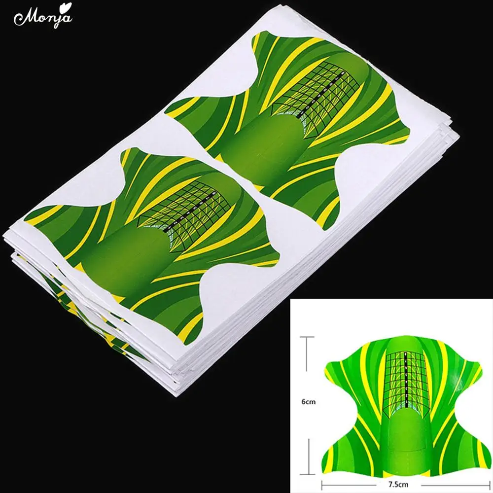 Monja 100 шт., наклейки для наращивания ногтей в форме зеленой бабочки во французском стиле, акриловый Гель-лак для самостоятельного стайлинга, трафарет