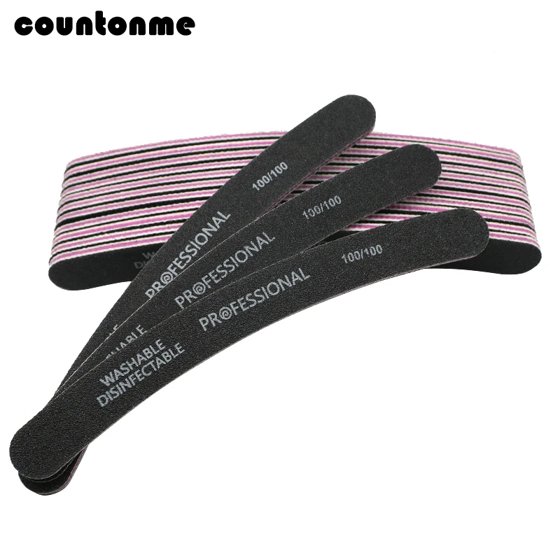 10 шт. чёрная пилка для ногтей 100/100 Professional NailFile изогнутые буфера Блок Маникюр Инструменты для гвозди шлифования УФ гель Советы nagelvijl