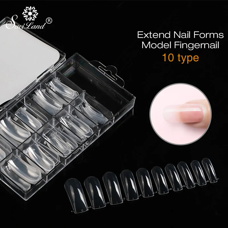 Saviland 100 шт поли гель поддельные ногти Ясно Французский полное покрытие акрил форма для ногтей со шкалой инструменты Типсы для дизайна ногте...
