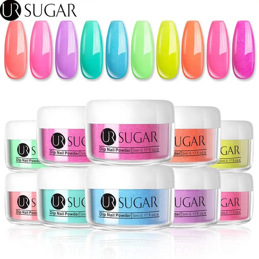 Набор порошков для ногтей UR SUGAR 4/10 шт., флуоресцентный Блестящий пигментный порошок, градиентные французские ногти, естественное сухое украшение