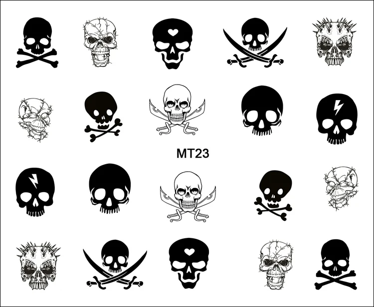 1 Простыни ногтей mt23 черный, белый цвет Меч череп модные Дизайн ногтей переноса воды Стикеры наклейка для ногтей Насадки для татуировок ногт...