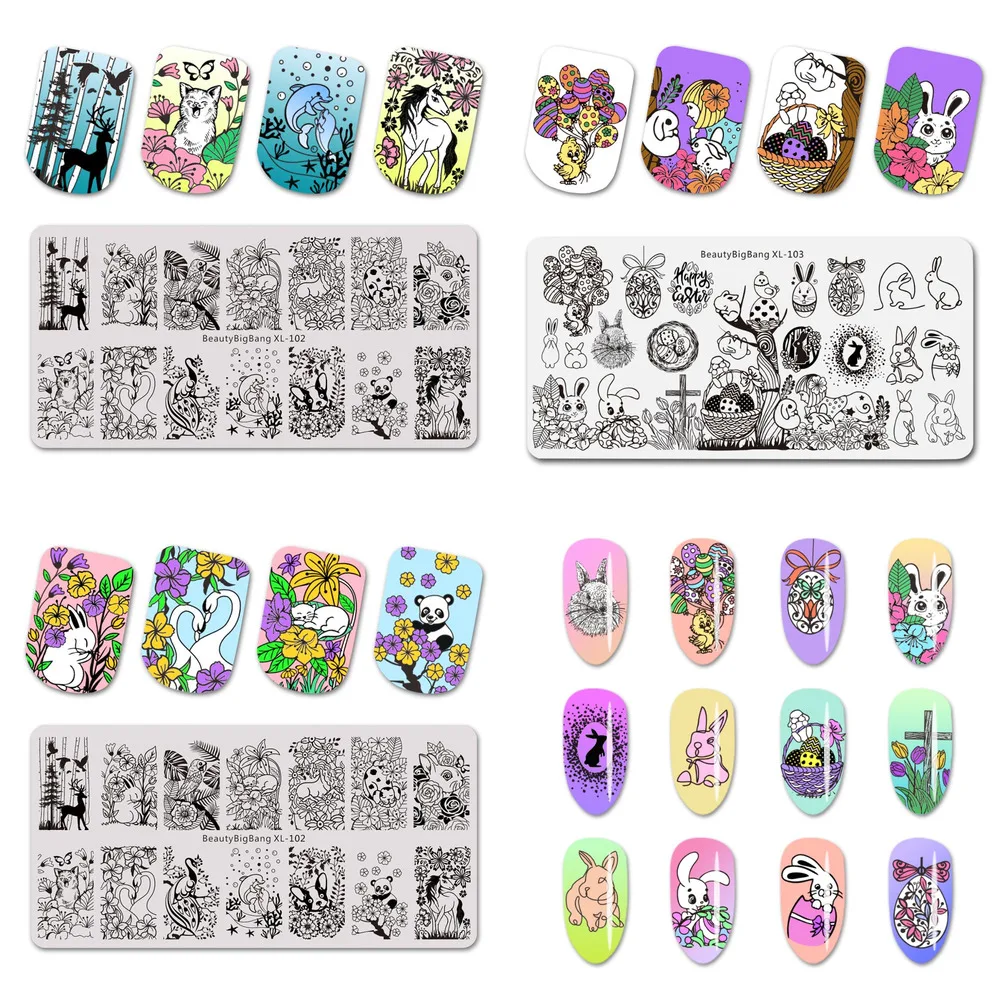 BEAUTYBIGBANG 1 шт. прямоугольная пластина для пасхального дня пасхальные яйца милый кролик для ногтей пластина для стемпинга для нейл-арта милый подарок