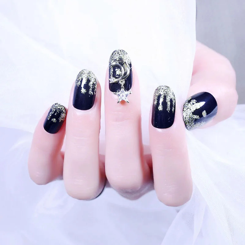 24 шт. в упаковке, дизайн со звездой и луной, короткий размер, отстегивающиеся для женщин, ноские, полное покрытие, акриловые накладные ногти с клеем