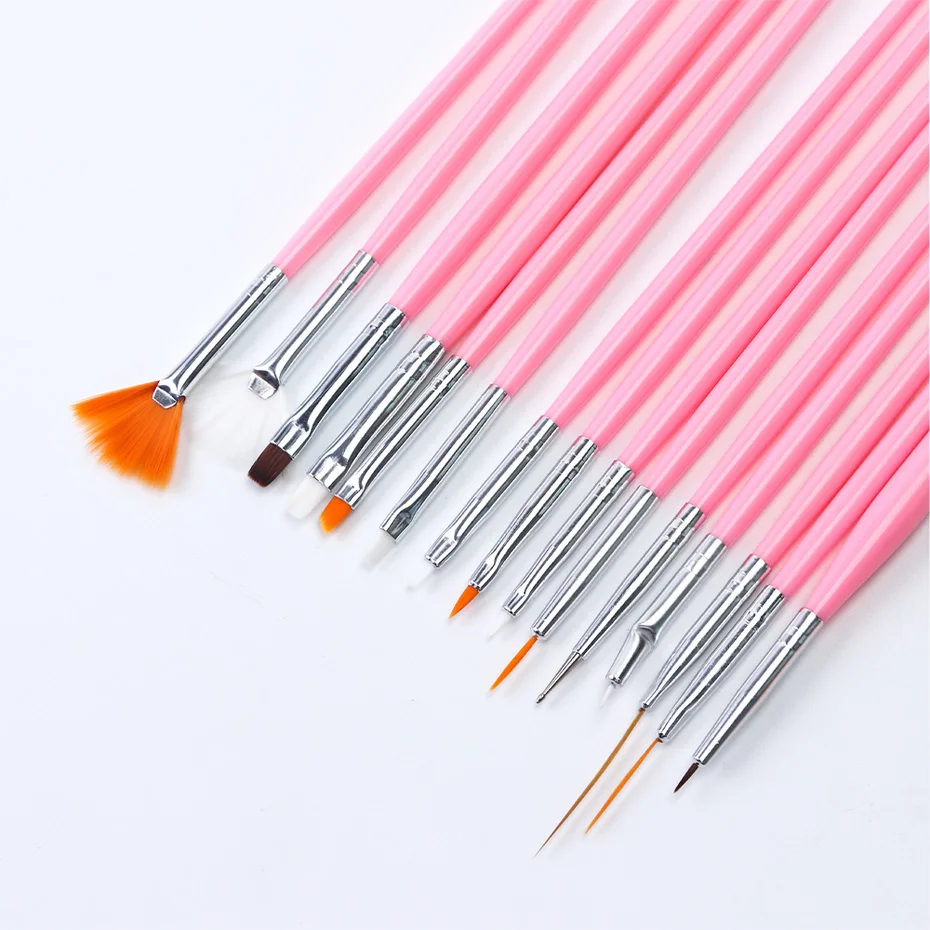 15 шт., кисти для маникюра, набор инструментов, Гелевая Кисть для дизайна ногтей, подводка для рисования, кисть для рисования, Веерная ручка, акриловый УФ-Гель-лак JINAO24