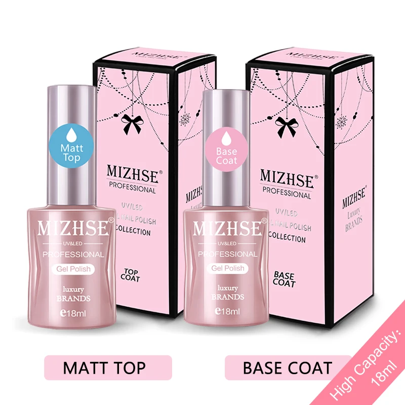 MIZHSE матовое верхнее покрытие УФ-гель для ногтей 2 шт основа и верхнее покрытие 18 мл стойкий гель лак прозрачный цвет матовое верхнее покрыти...