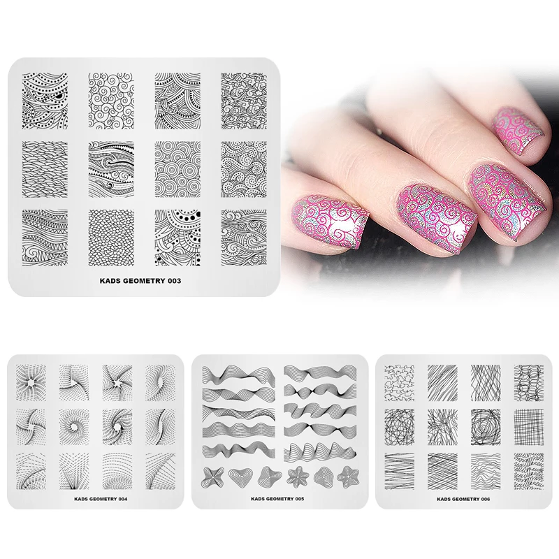 KADS пластины для ногтей 6 видов конструкций геометрия серии надписью дизайнерская печать лоток для дизайна ногтей маникюрный шаблон ногтей ...