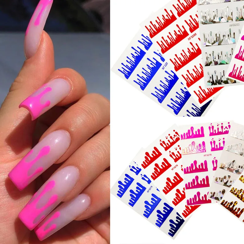 5 шт., капельные ногти, водная горка, капающая наклейка для ногтей, Голографическая фольга для ногтей, самоклеящаяся 3D голографическая наклейка для дизайна ногтей