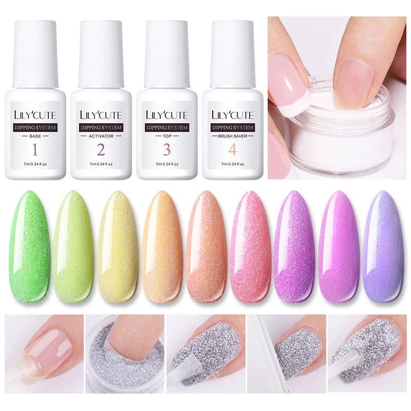 LILYCUTE 8 шт./компл. погружающий лак для ногтей Наборы для пудры градиент французский гвоздь натуральный цвет голографический пигмент сухой бе...